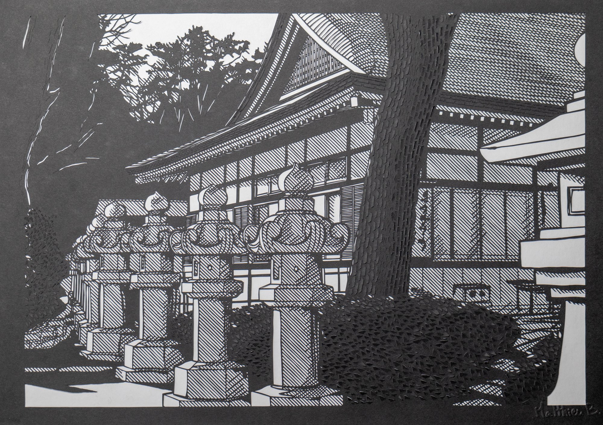 Shōin Shrine – Kirie original, papier découpé, plié